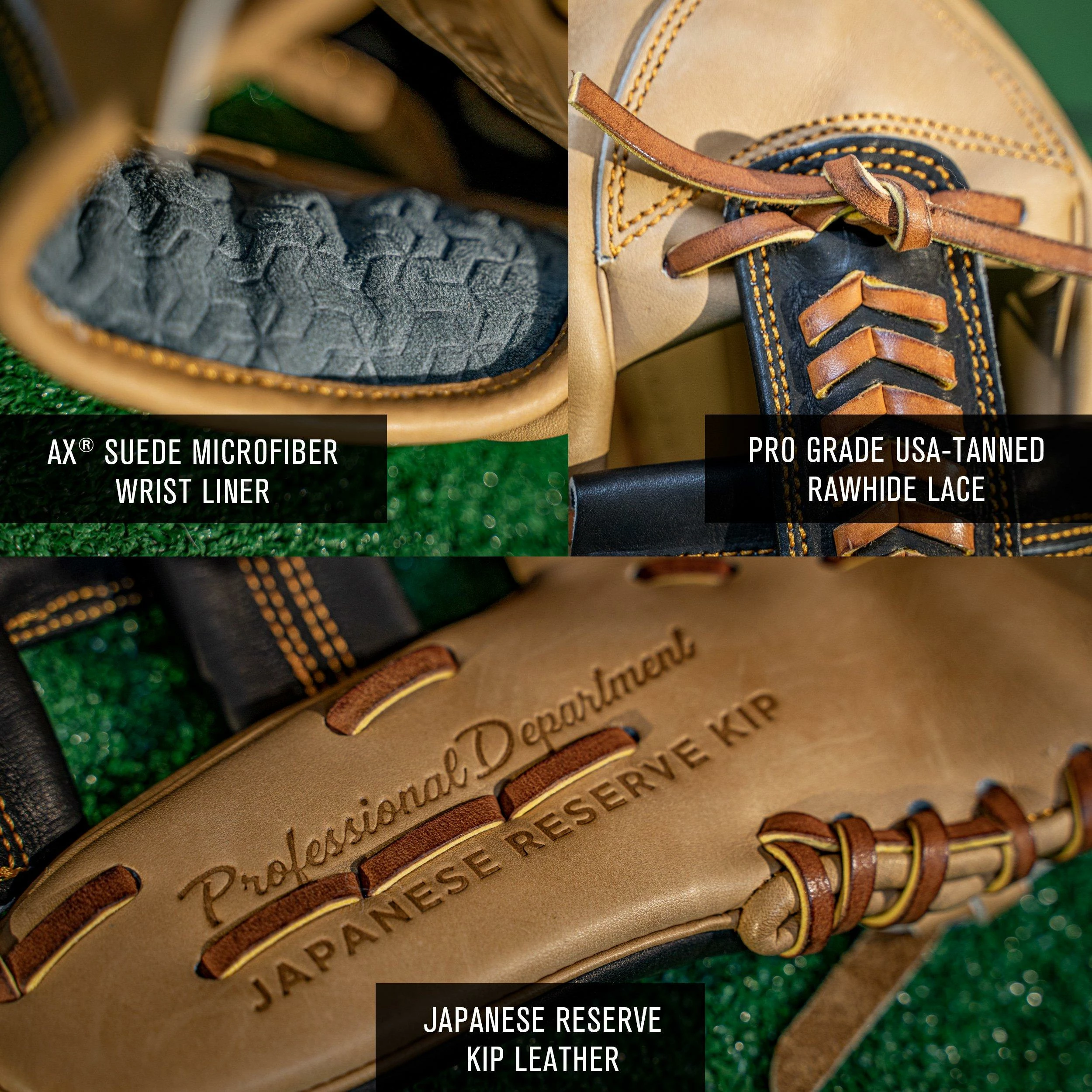 Handcrafted with premium Japanese Reserve Kip leather, durable USA-tanned lace and ultra-comfortable Ideal Fit System™, the Pro Collection Kip gloves are built for the game’s elite players. Designed for ultimate comfort and pro performance, the Ideal Fit System™ features a laceless kip lining, a loopless thumb stall, spacious Kip fingerstalls, room for two fingers in the pinkie and an Ax® Suede back of wrist material. Come see why the brightest stars in the game like Justin Turner, Ramon Laureano, Alex Bregman, Adalberto Mondesi, Jose Ramirez, Ketel Marte and Austin Hedges use the Easton Professional Collection. Once you try one on, you will not want to take it off.