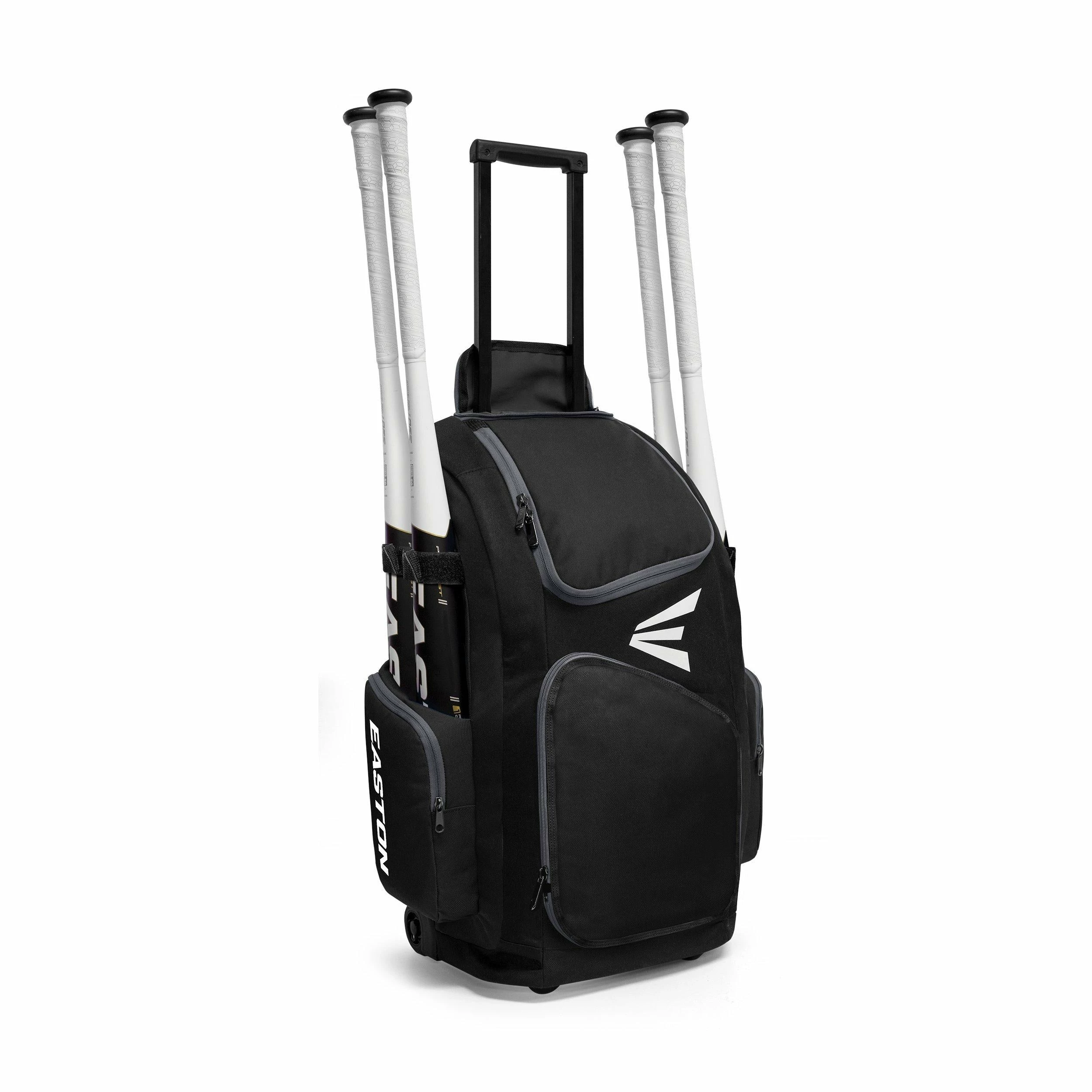 Easton’s® Traveler Stand Up Wheeled Bag combines the style and design of a backpack with the convenience of a wheeled bag. Transport your gear to games and practice easily with the bag’s telescoping handle and wheels, and then use the fence hook at the field to keep things organized in the dugout. The Traveler Stand-Up Wheeled Bag has sleeves to hold 4 bats, and 2 side pockets to keep your personal items easily accessible. The main compartment is vented, and the separate vented cleat compartment has a fully removable panel for team embroidery.